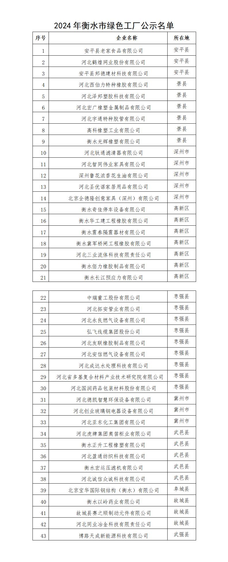 衡水市|2025年度衡水市绿色工厂名单公示按照工信部《绿色工厂梯度培育及管理暂行办法》有关要求,我局组织开展了2025年衡水市绿色工厂申报