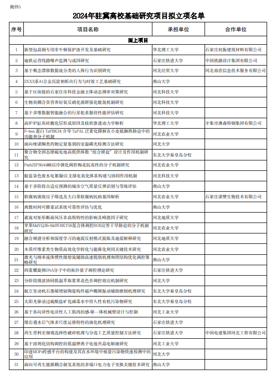 关于对2024年驻冀高校与石家庄市产学研合作拟立项项目进行公示的通知