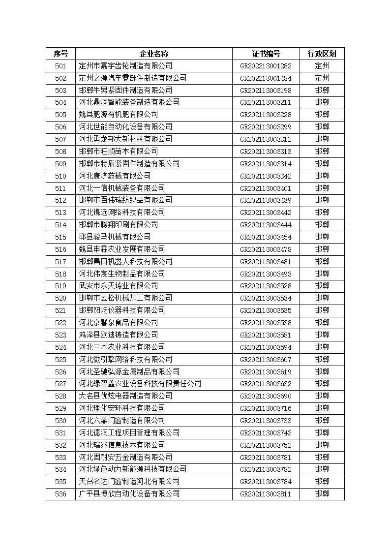 根据省委、省政府相关文件要求,省科技厅对新认定的高新技术企业每家给予10万元奖励性补助。按照国家批复的高新技术企业名单顺序,经征求各市意见,现将2023年拟补助的高新技术企业予以公示(名单附后),公示期为2022年 2月1日至2月5日。